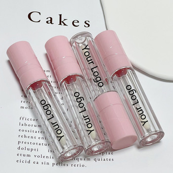 Lápiz labial redondo transparente rosa de 3ml, tubo vacío, tubo de Color labial cosmético, embalaje de plástico, logotipo personalizado