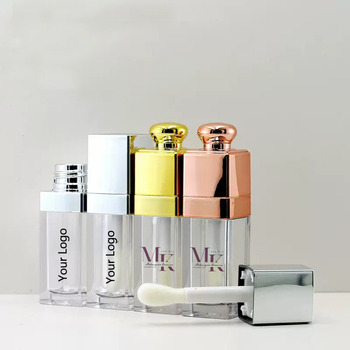豪華な7mlリップグロスチューブカスタムプライベートロゴスクエアプラスチックチューブピンクホワイトブラックリップスティック液体化粧品包装